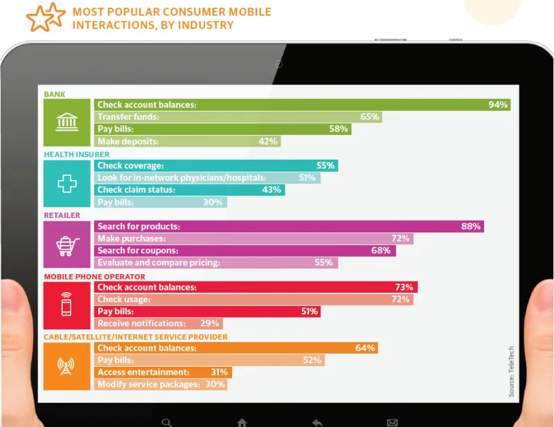 Most popular consumer mobile interactions, by industry