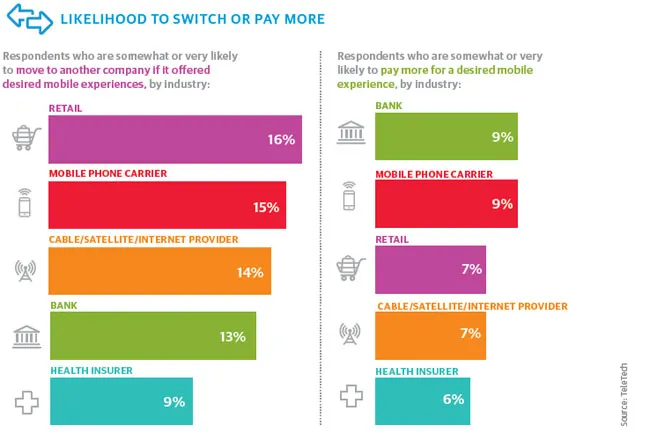 So while our research found that a relatively small percentage of consumers would switch companies or pay more for superior mobile experiences, those small figures represent millions of consumers and revenue potential.