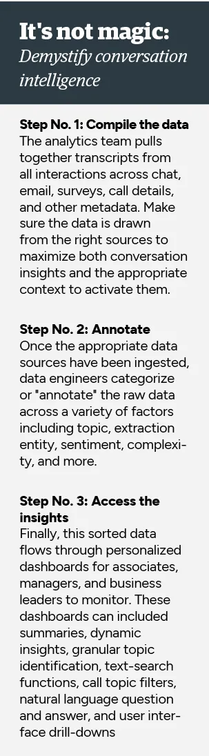 Committed to frictionless customer experience? Look no further than conversation intelligence, an increasingly important strategy to enhance the customer journey and proactively manage the business.