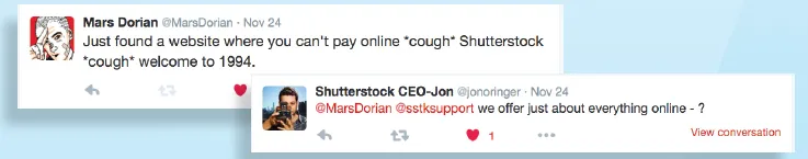 Stock image company Shutterstock has a market valuation of $1 billion and operates 11 offices around the world. So imagine the surprise that customer Mars Dorian had when a complaint tweet about the brand was met minutes later by a reply directly from founder and CEO Jonathan Oringer.