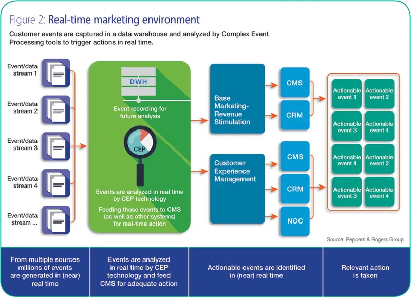 Real-time marketing requires a complex and agile system to proactively respond to individual events, complex combination of events, and changes to the business environment. In telecommunications, these events can be system- or customer-generated (e.g., dropped calls, out of credit, high churn risk score, etc.). The changes can be automatically captured and acted upon based on specific business rules and processes, or may require human intervention after being flagged. It should designed to continuously evolve and adapt, operating as a re-iterative, test-and-learn operating model to ensure the impact of the triggering events provides important lessons for future decisions.