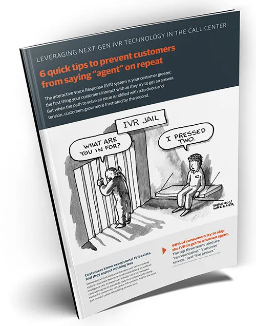 To learn more about how to leverage next-gen IVR technology to make your call automation software work for customers, not against them, download our IVR cheat sheet 6 Tips to Prevent Customers from Saying “Agent” on Repeat.